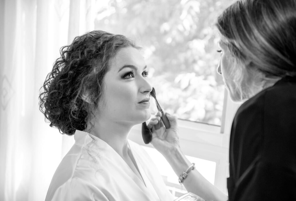 Realización del maquillaje y peinado con técnicas profesionales y productos de larga duración, asegurando comodidad, definición y un resultado impecable durante toda la celebración.